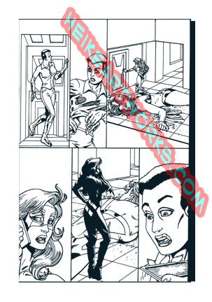 Original art for page 6 of Superbabes #14. This is for the actual production art for Superbabes #14 ! Mark Heike's pencils on 11X17 paper. Inked by Mark Heike.