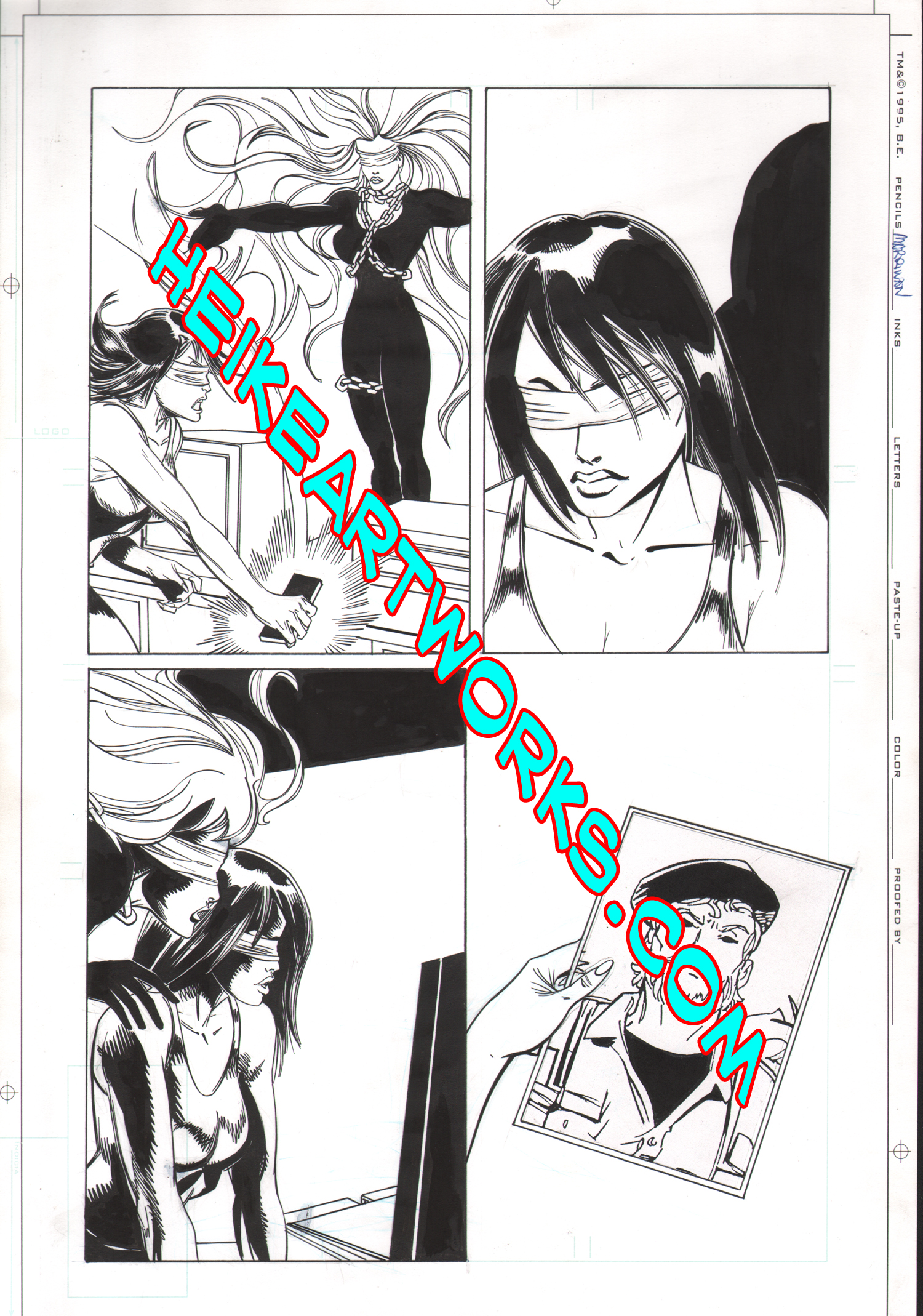This is an actual original comic book page. It's inked by Mark G. Heike (Femforce, Star Trek, Star Wars: Tales of the Jedi ) artwork. Art image is app. 10 3/8" X 15 1/2" on 17 " X 11" Bristol board, executed in India ink with pen and brush, on preprinted Tekno Comics layout grid. The winning bidder, at his request, can have the piece autographed by the artist, Mark G. Heike A great classic 90's collector's item for comic collectors!!
