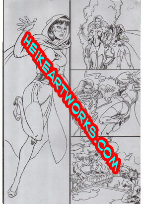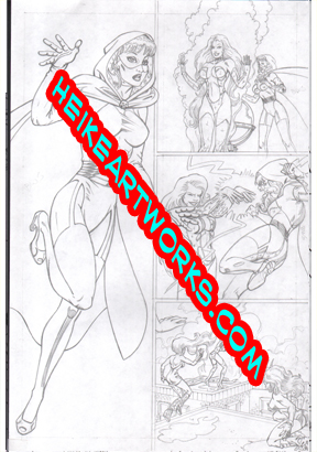 This is for the actual production art for Superbabes #2! TWO pages! Mark Heike's pencils on 11X17 paper. Inked by Stephanie Heike on vellum.