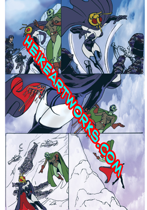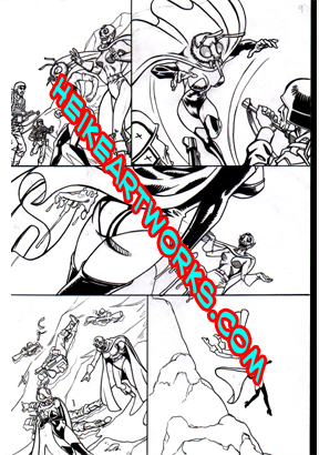 Original art for page six of Superbabes #2. This is for the actual production art for Superbabes #2! Mark Heike's pencils on 11X17 paper. Inked by Stephanie Heike and Mark Heike.