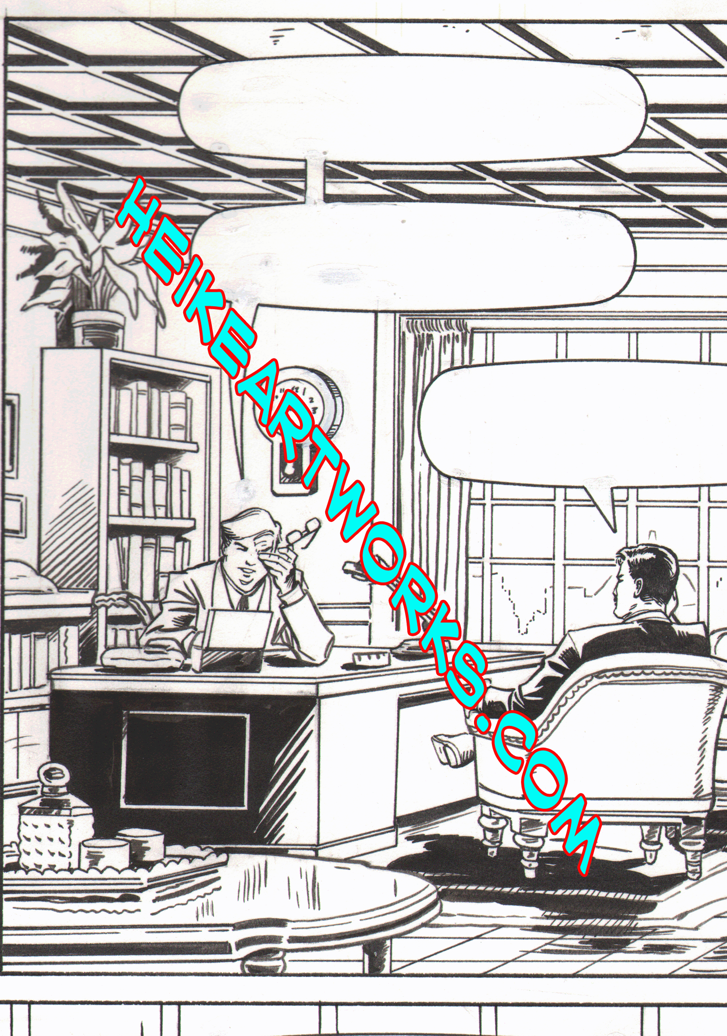 Here's a great example of one of the actual original art pages used in producing the Secret Weapons comic published by Valiant/Acclaim in the mid-'90's This page are from issue #14, and were penciled by John Nadaeu, known for his long association with the Star Wars comic book franchise at Dark Horse, having illustrated various SW series for them. The artwork is inked by Mark Heike, who is best- known for his long association with AC Comics and especially his artwork on the famous Femforce long running comic book, as well as memorable stints on TMNT at Image, Star Trek at DC, Star Wars: Tales of the Jedi and Xena at Dark Horse, and Mantra at Malibu. Fans who appreciate sci-fi tech and realistic depictions of people will enjoy these pages, as those are Nadeau's strongpoints-and he shows them here. These are hand-drawn, one-of-a-kind originals, produced with pencil, pen, brush and india ink. Art area is 91/2" X 14 1/8" drawn in black ink on white, 11 3/8" X 17" white two-ply bristol baord, preprinted with Valiant margins and grids. Each of these pages is already signed by pencil artist John Nadeau in the upper right-hand corner, and if the winning buyer so requests it, this page can be autographed by inker Mark Heike, as well.