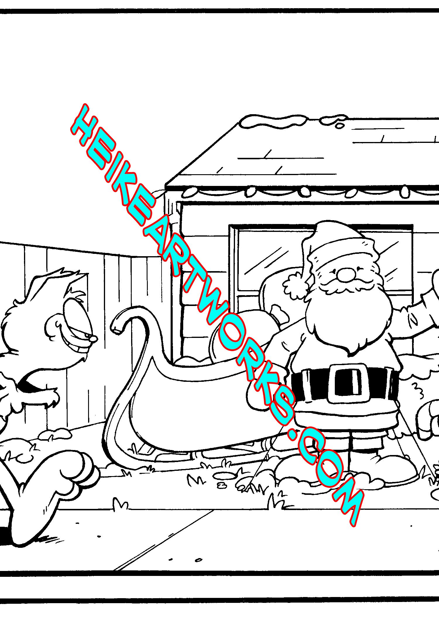 This story features the famous comic strip feline, Garfield the fat and sassy orange cat helping his mouse friends out of danger from another cat disguised as "Santa" for Christmas.